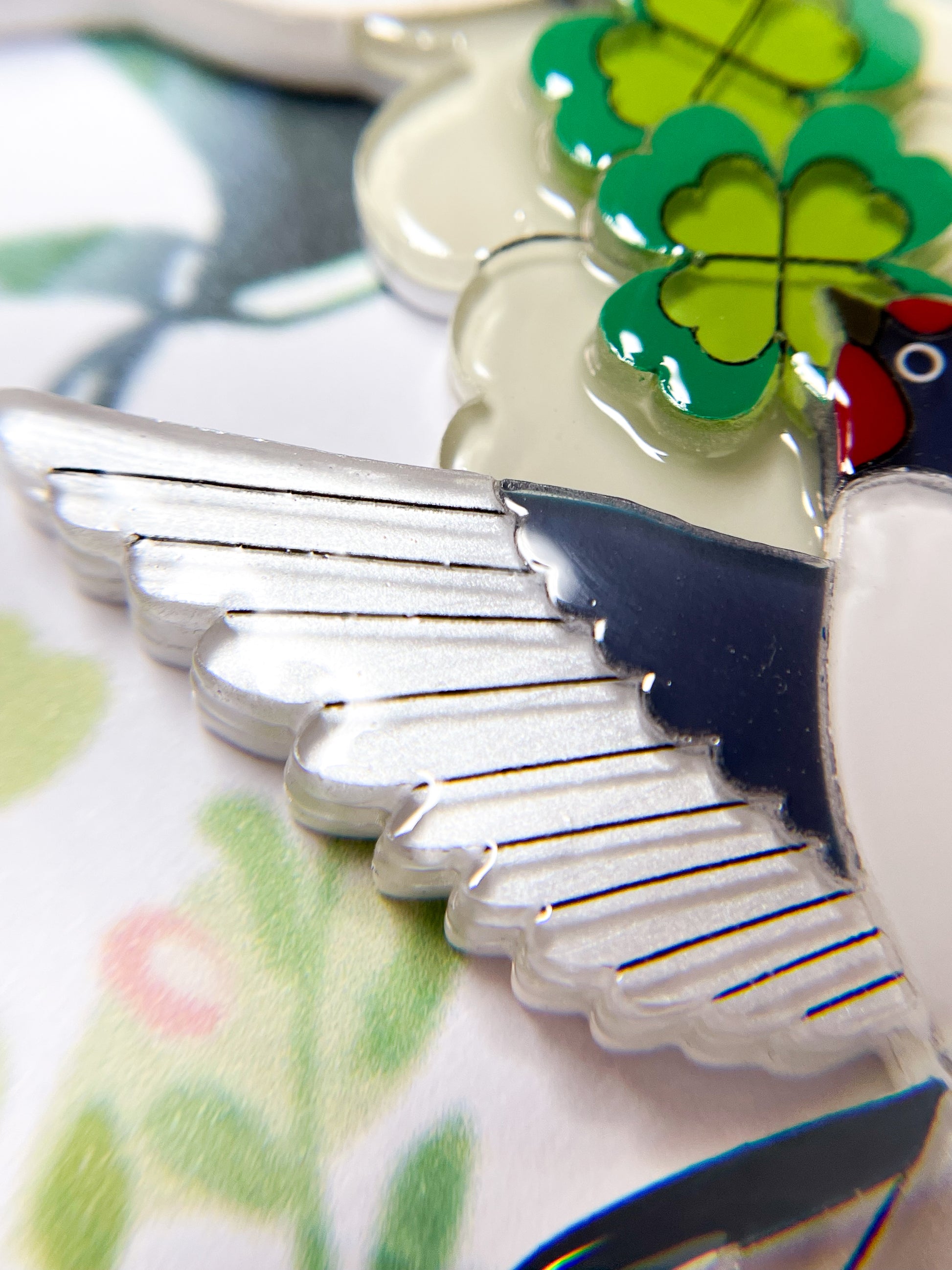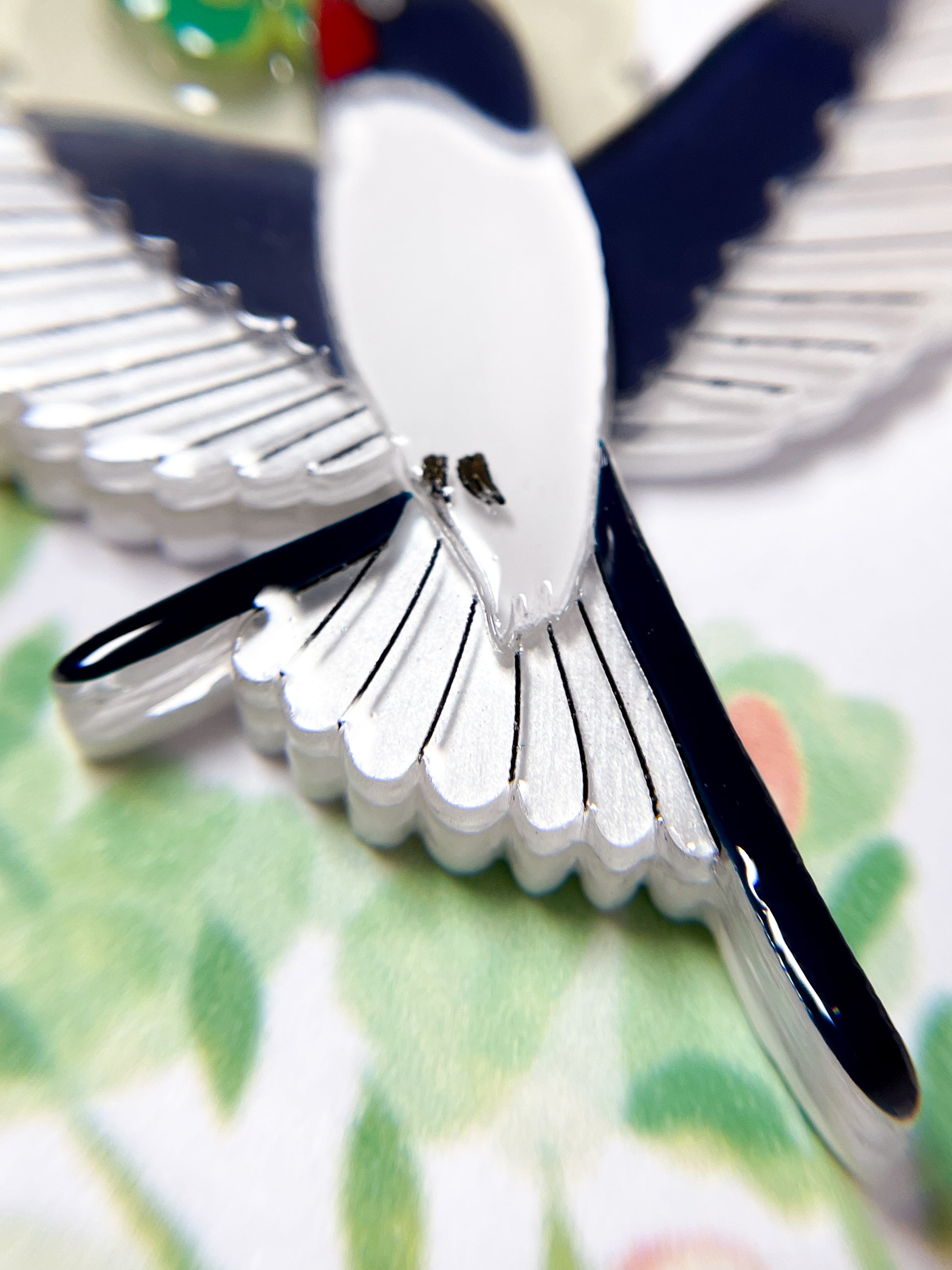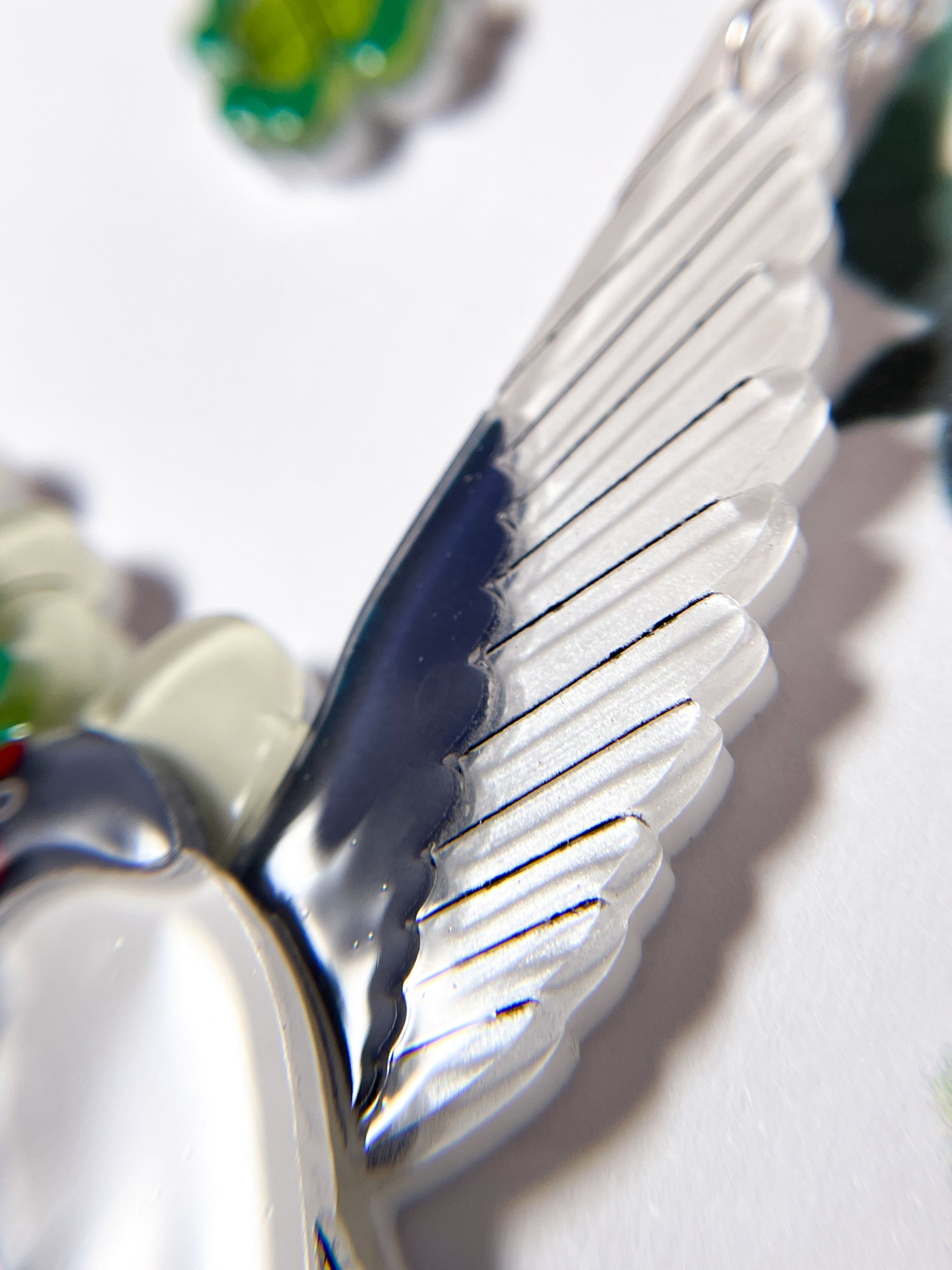 This necklace is made from 22 pieces of hand-painted acrylic plates, assembled and coated with acrylic UV/LED resin and finished with a silver surgical stainless steel chain with an extender.