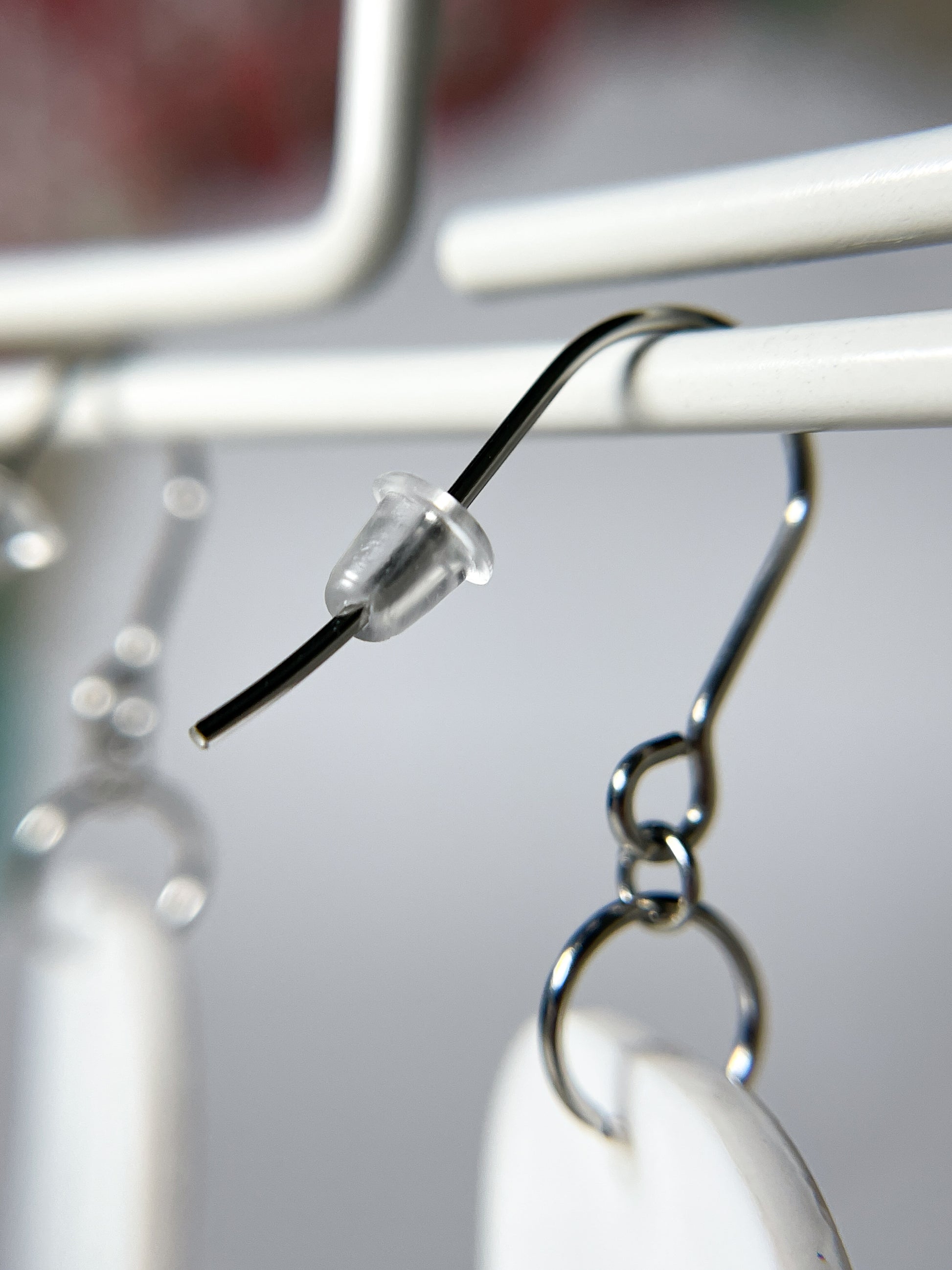 These earrings are made from 4 pieces of acrylic plates, hand-painted and coated with acrylic UV/LED resin and finished with surgical stainless steel silver hooks.