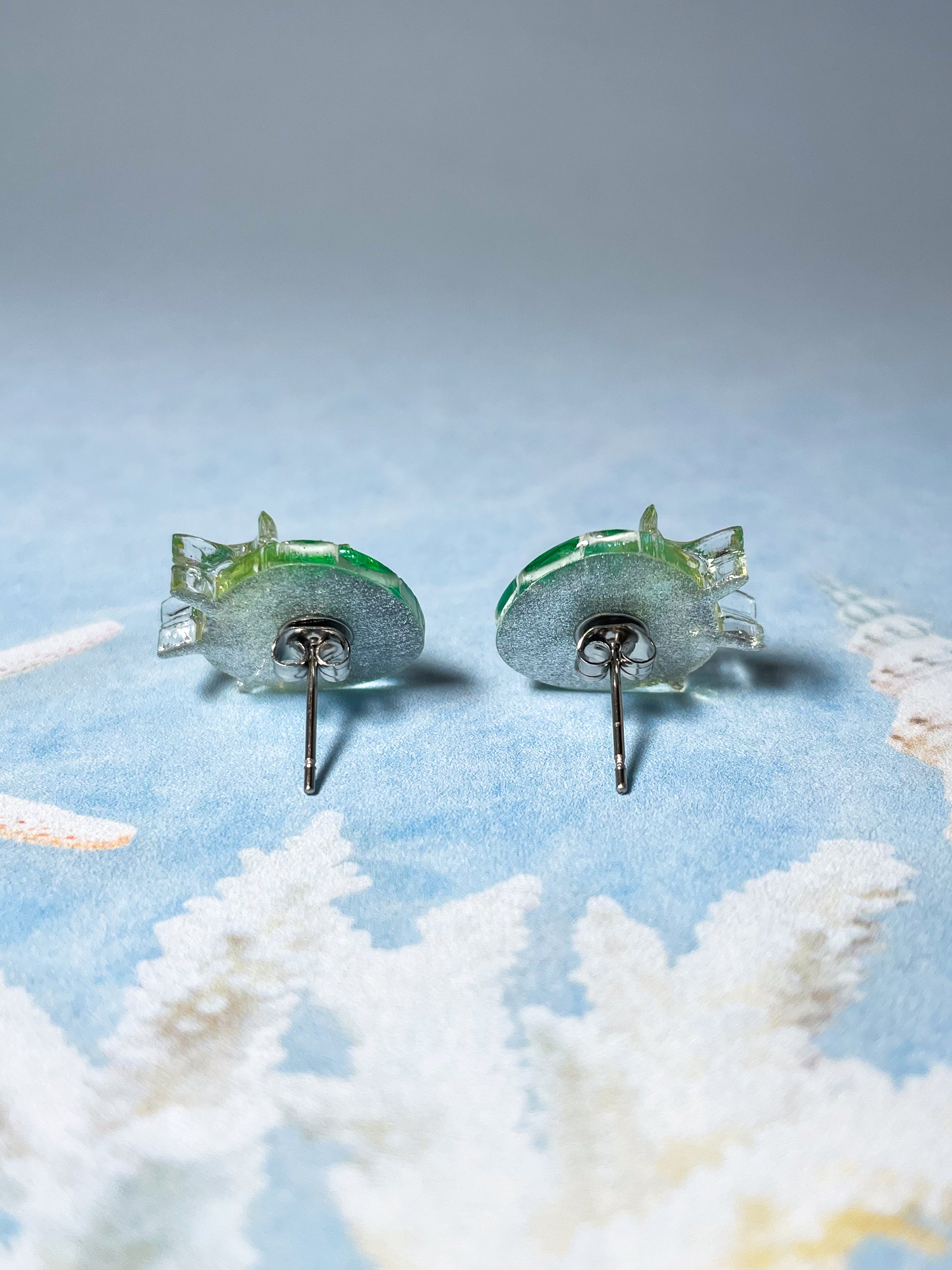 Those earrings are made from 4 pieces of acrylic plates, hand-painted and coated with acrylic UV/LED resin and finished with silver-plated surgical stainless steel studs.