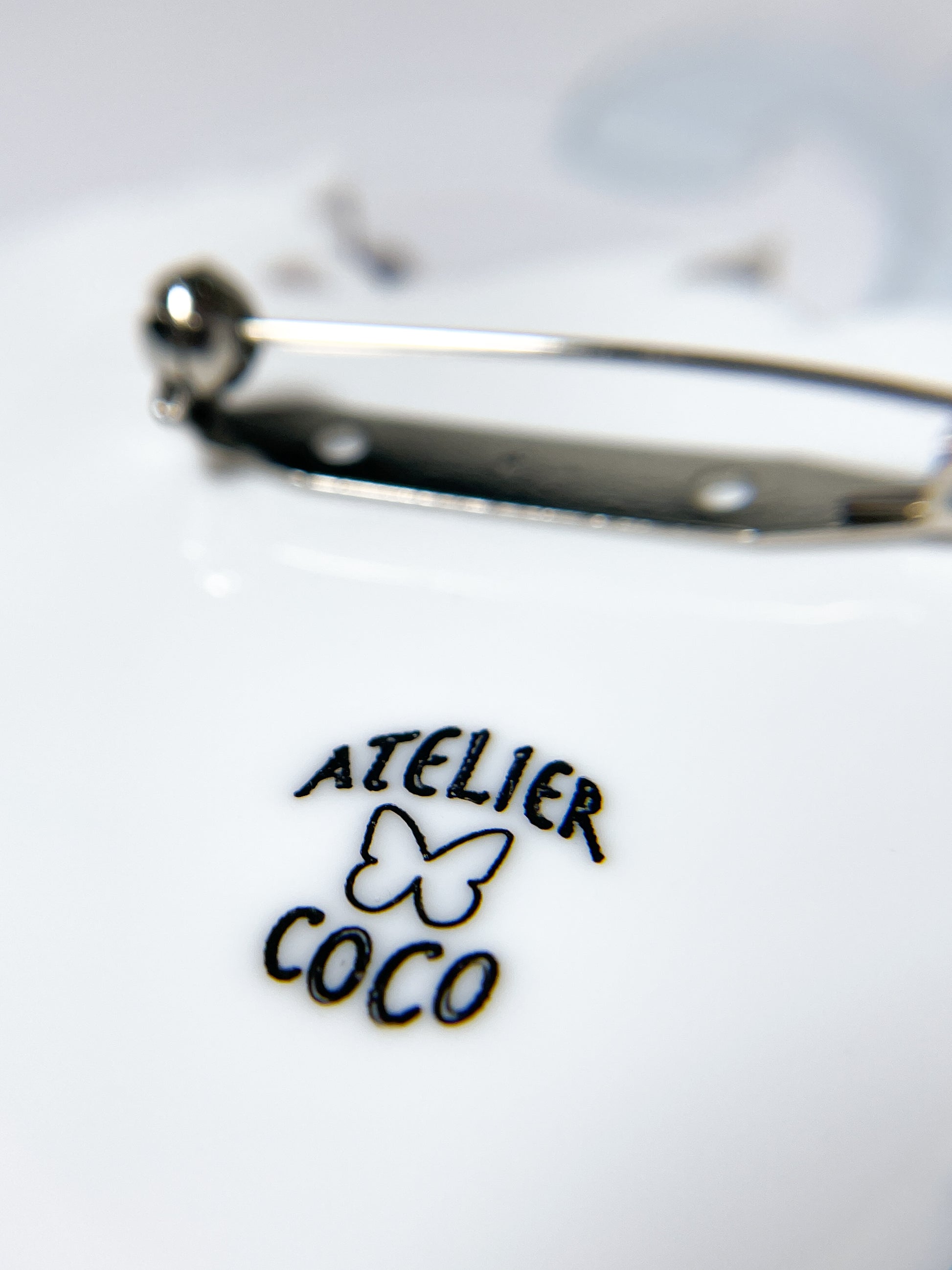 Original design by a Japanese accessory artist Coco and each brooch has the "ATELIER COCO" logo on the back.