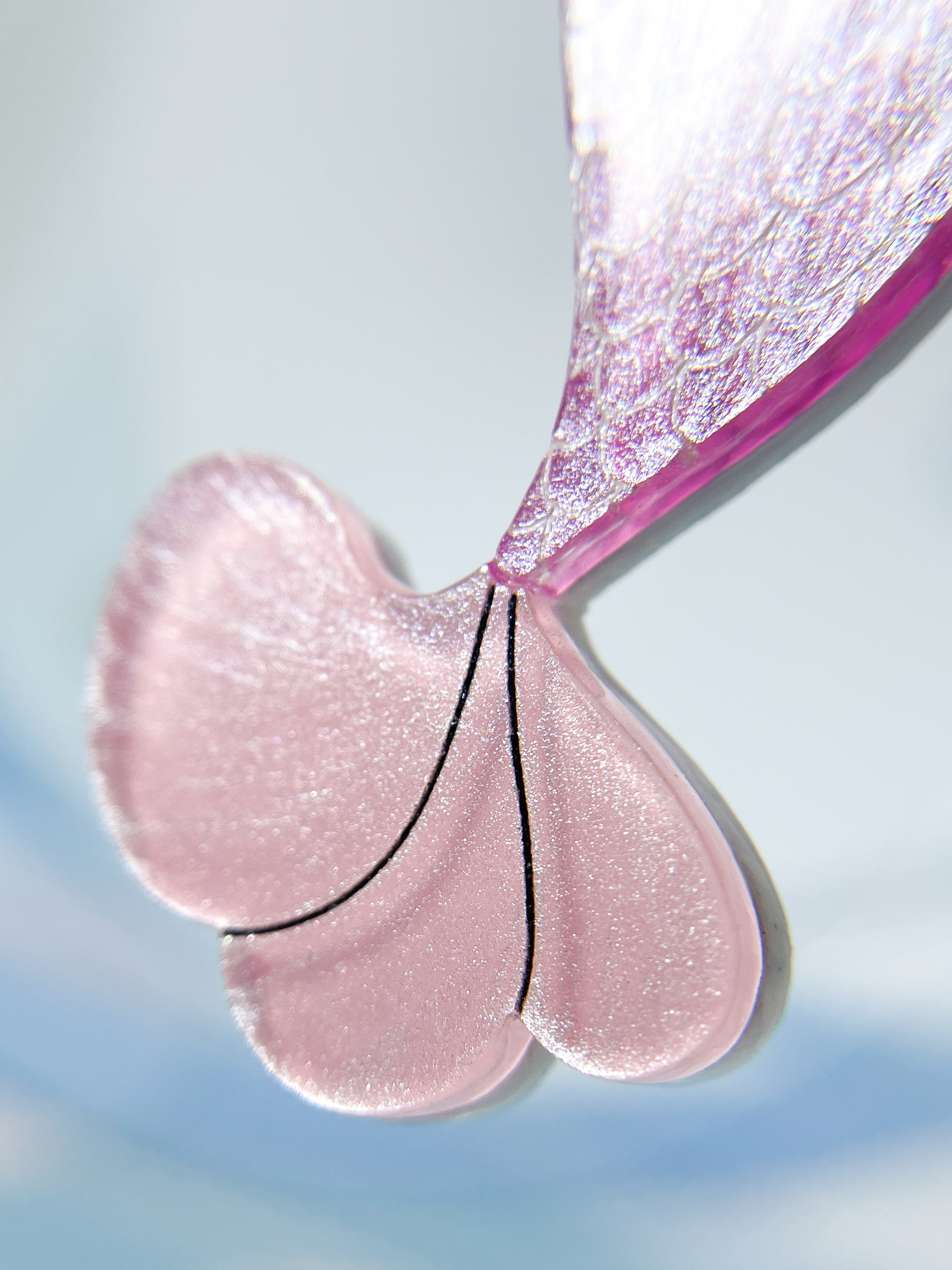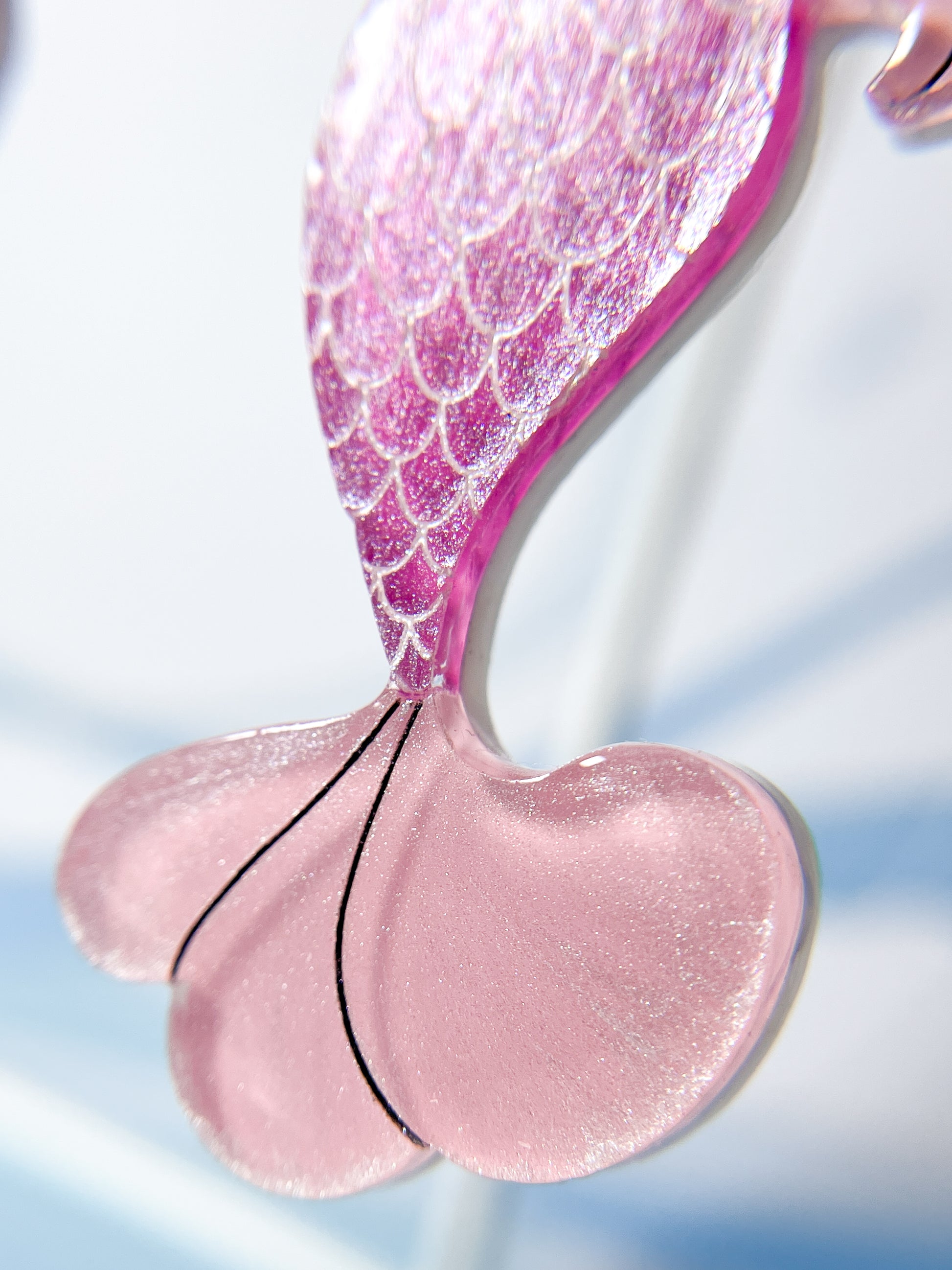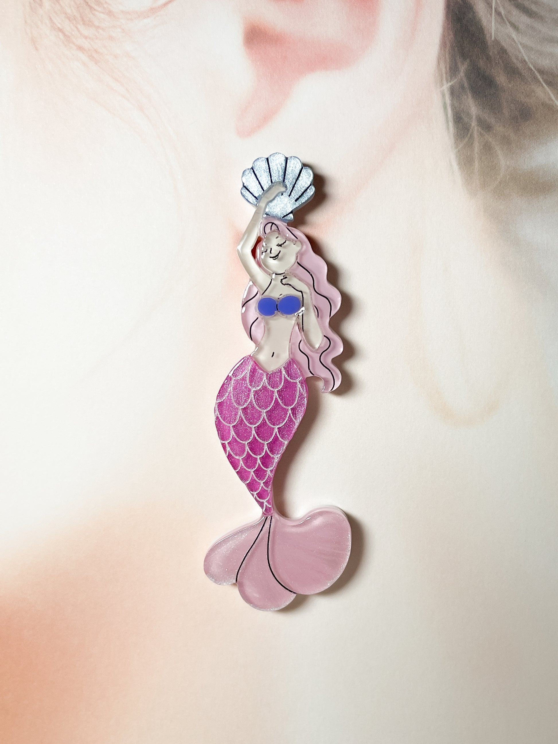 These earrings are made from 18 pieces of acrylic plates, hand-painted and coated with acrylic UV/LED resin and finished with silver-plated surgical stainless steel studs.