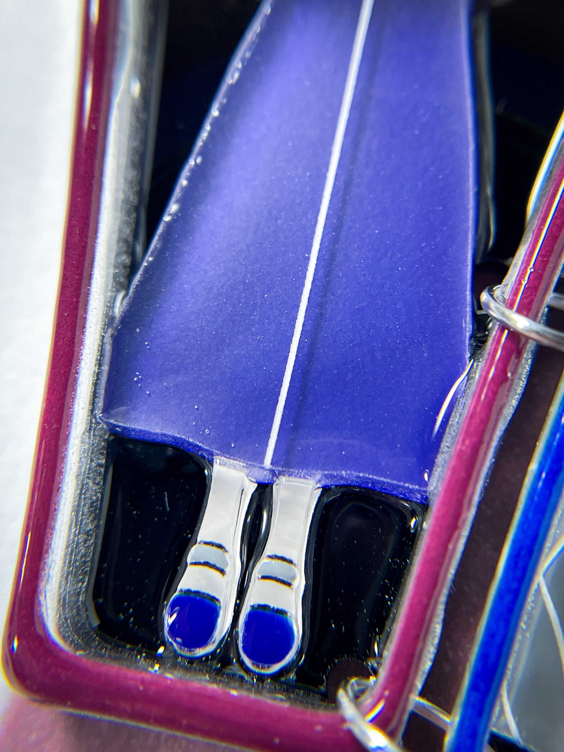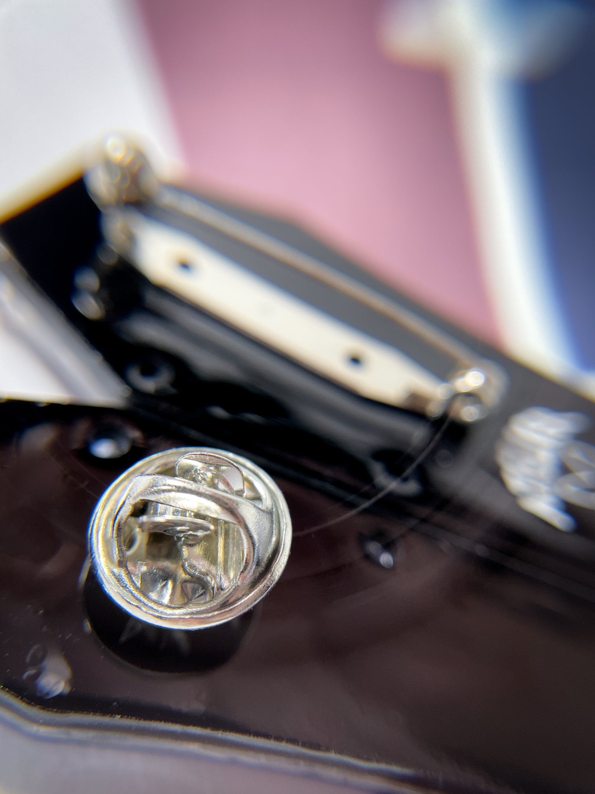This brooch is made from 15 pieces of hand-painted acrylic plates, assembled and coated with acrylic UV/LED resin and backed with a silver brooch pin and a butterfly tack pin.