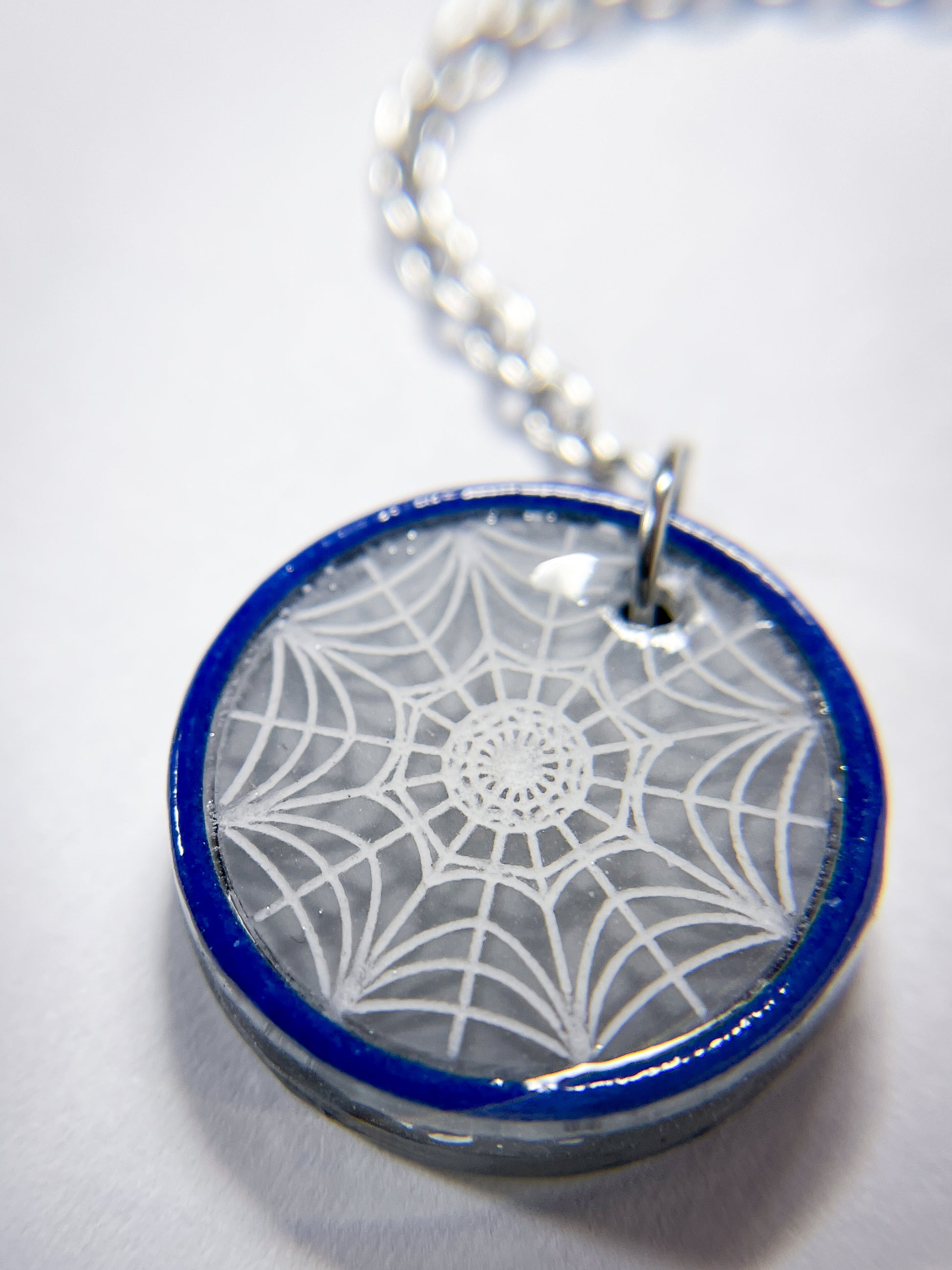 This necklace is made from 20 pieces of hand-painted acrylic plates, assembled and coated with acrylic UV/LED resin and finished with a silver surgical stainless steel chain with an extender.