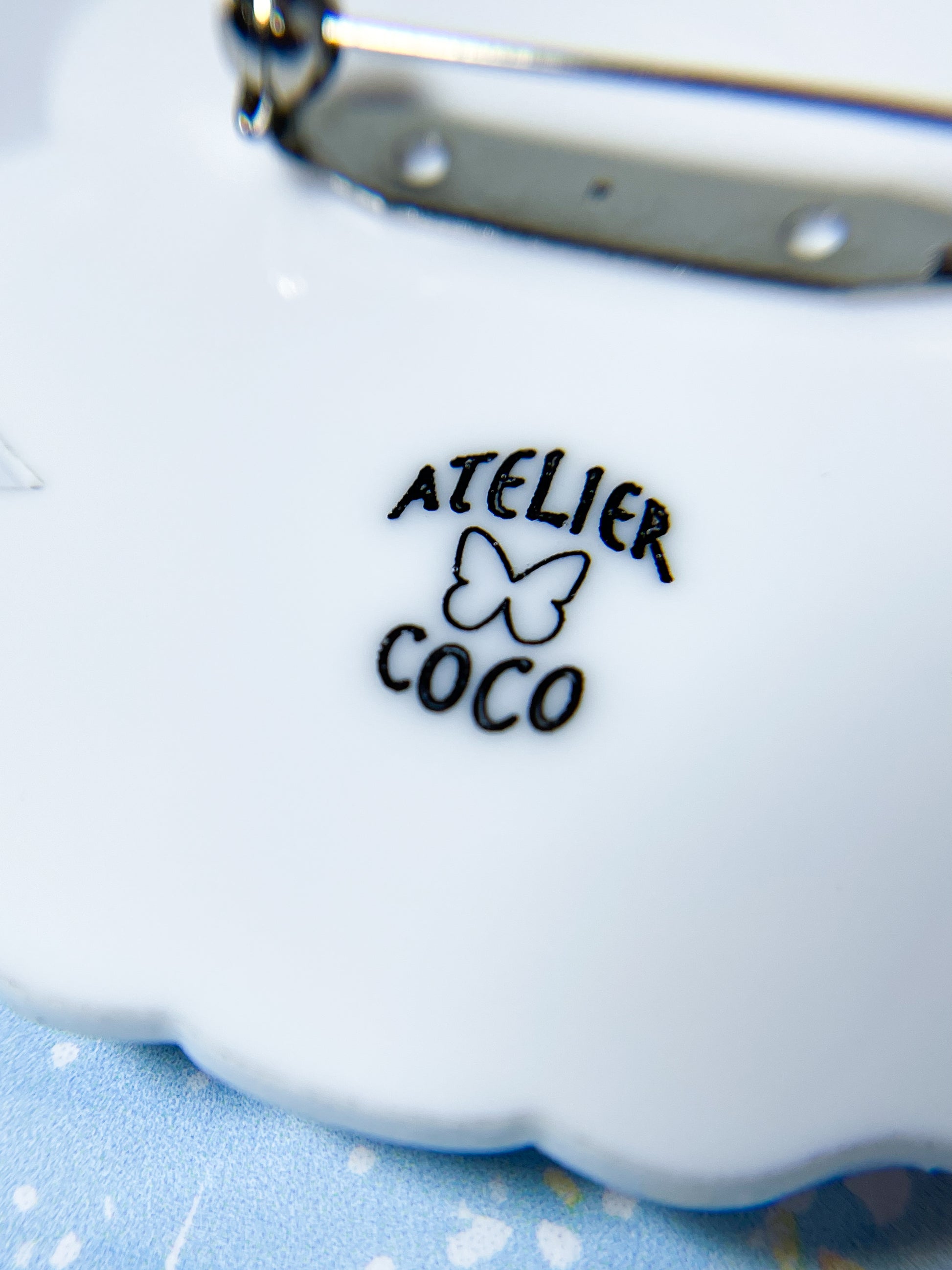 Original design by a Japanese accessory artist Coco and each brooch has the "ATELIER COCO" logo on the back.