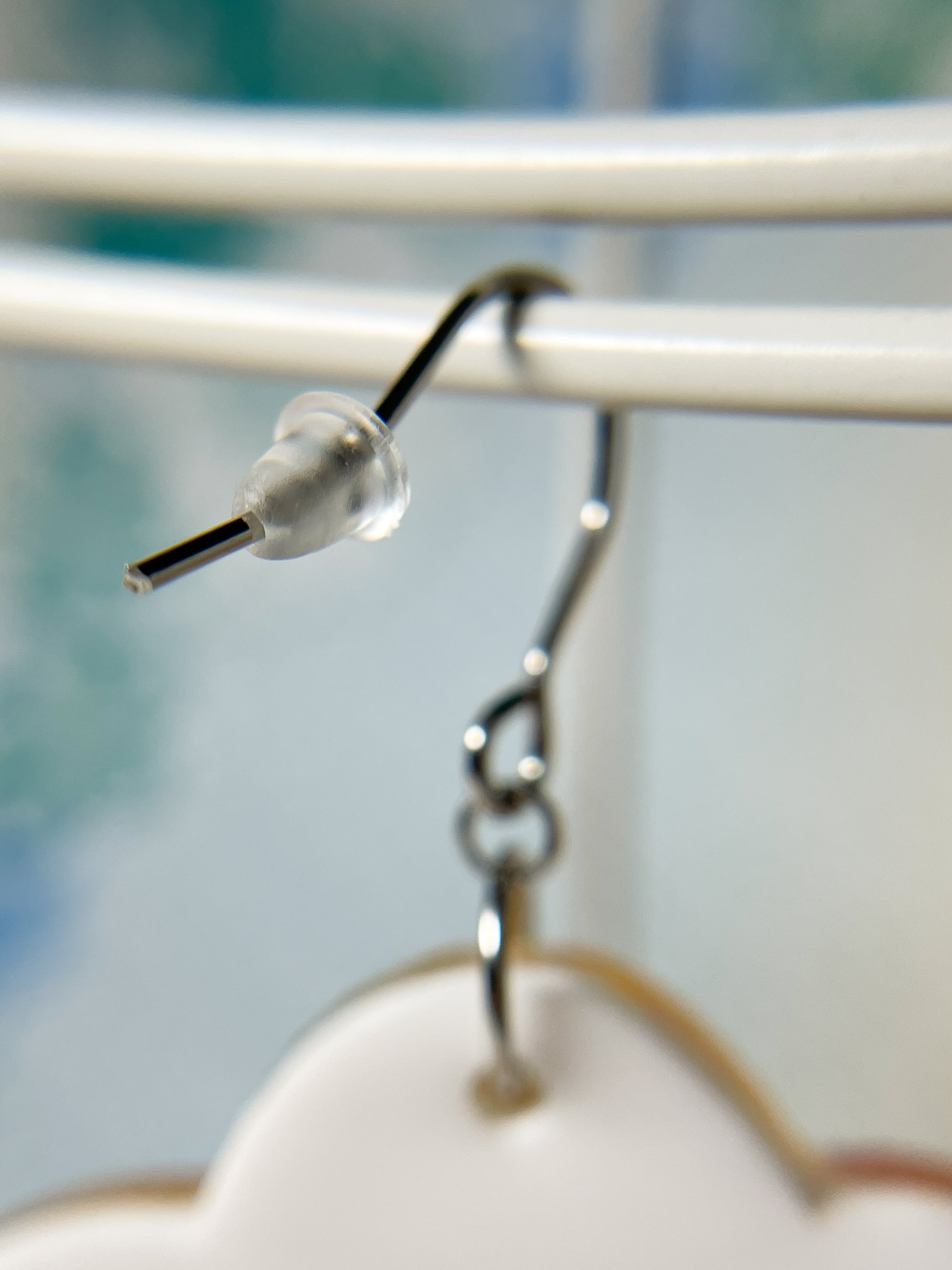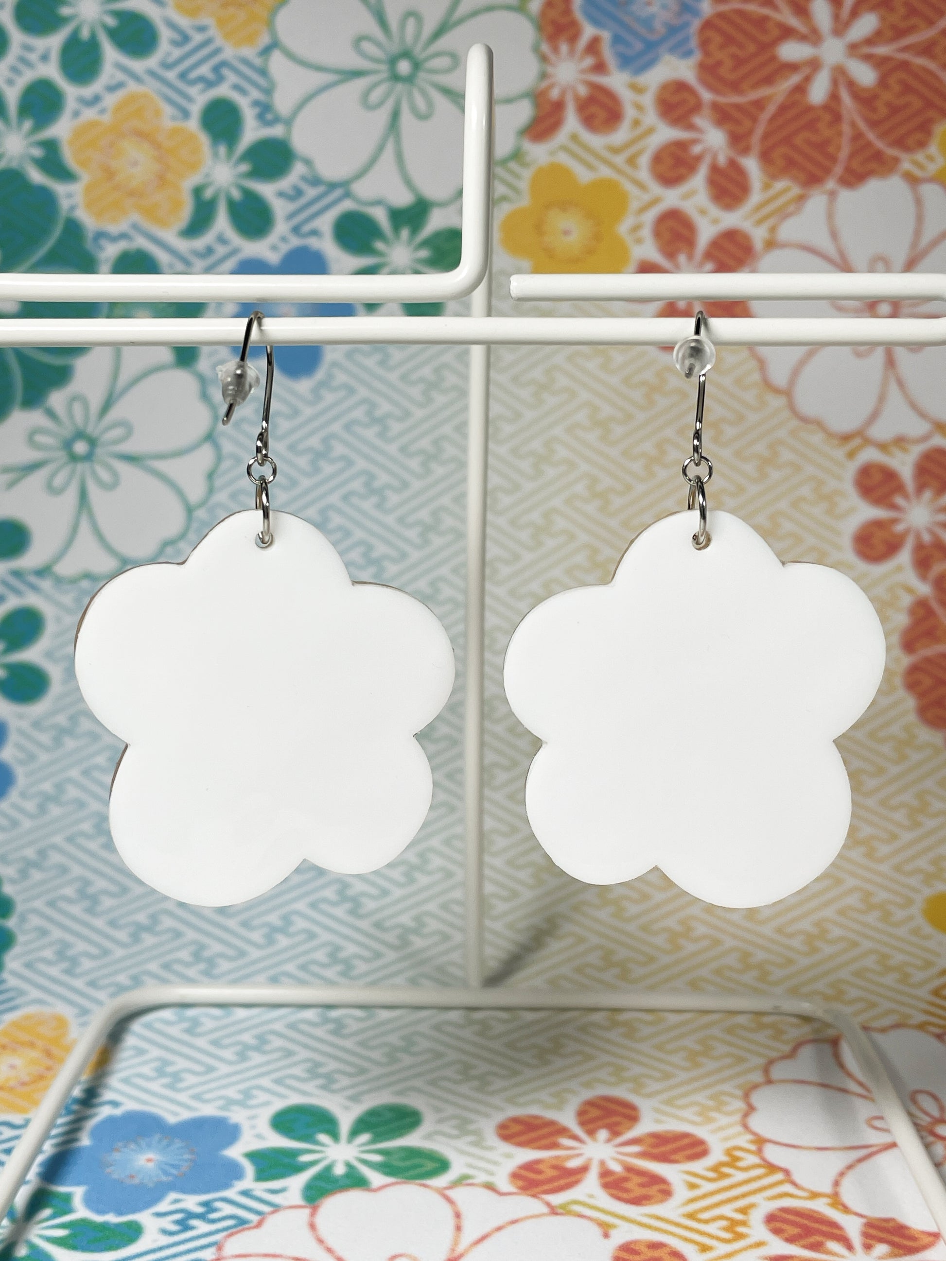 These earrings are made from 4 pieces of acrylic plates and 2 pieces of OHP films, hand-painted and coated with acrylic UV/LED resin and finished with surgical stainless steel silver hooks.