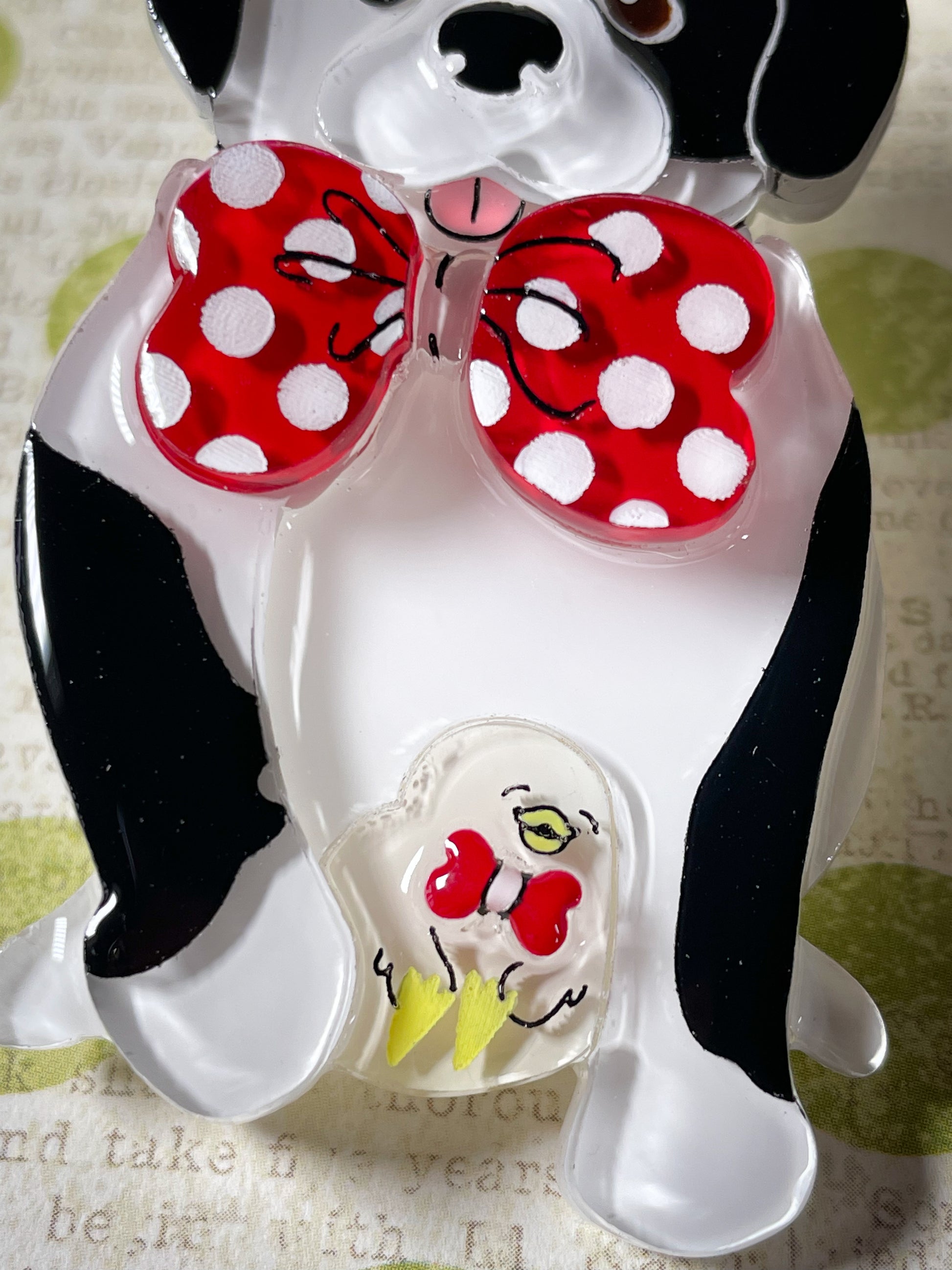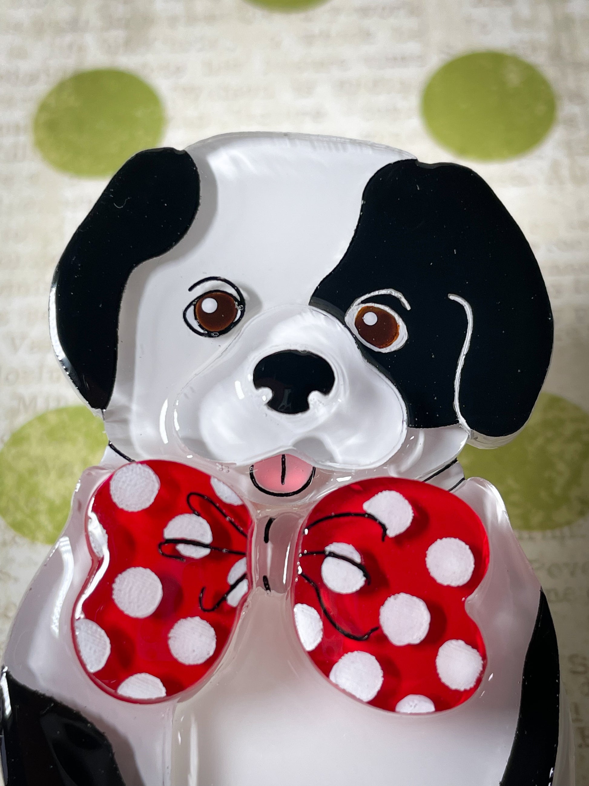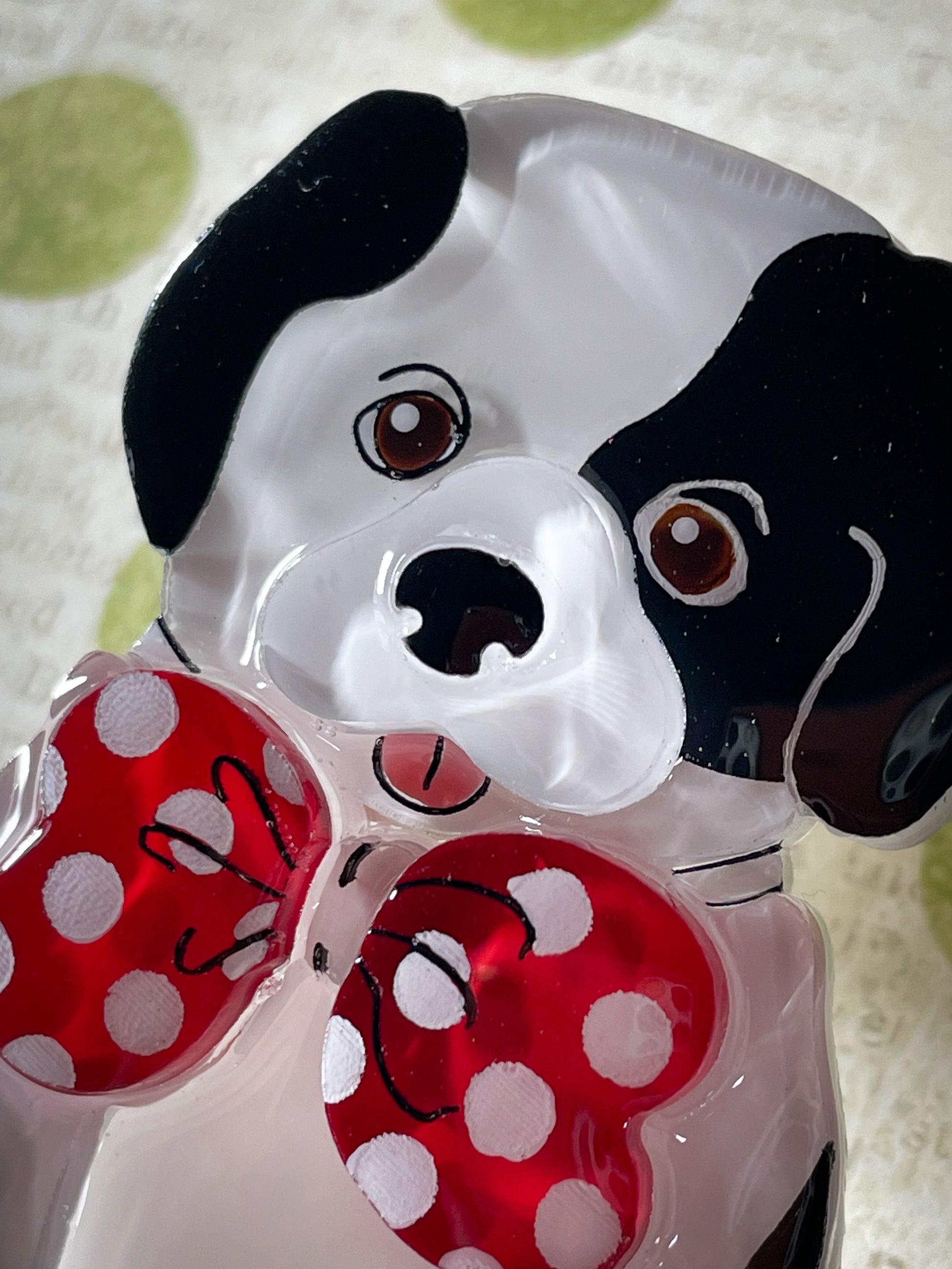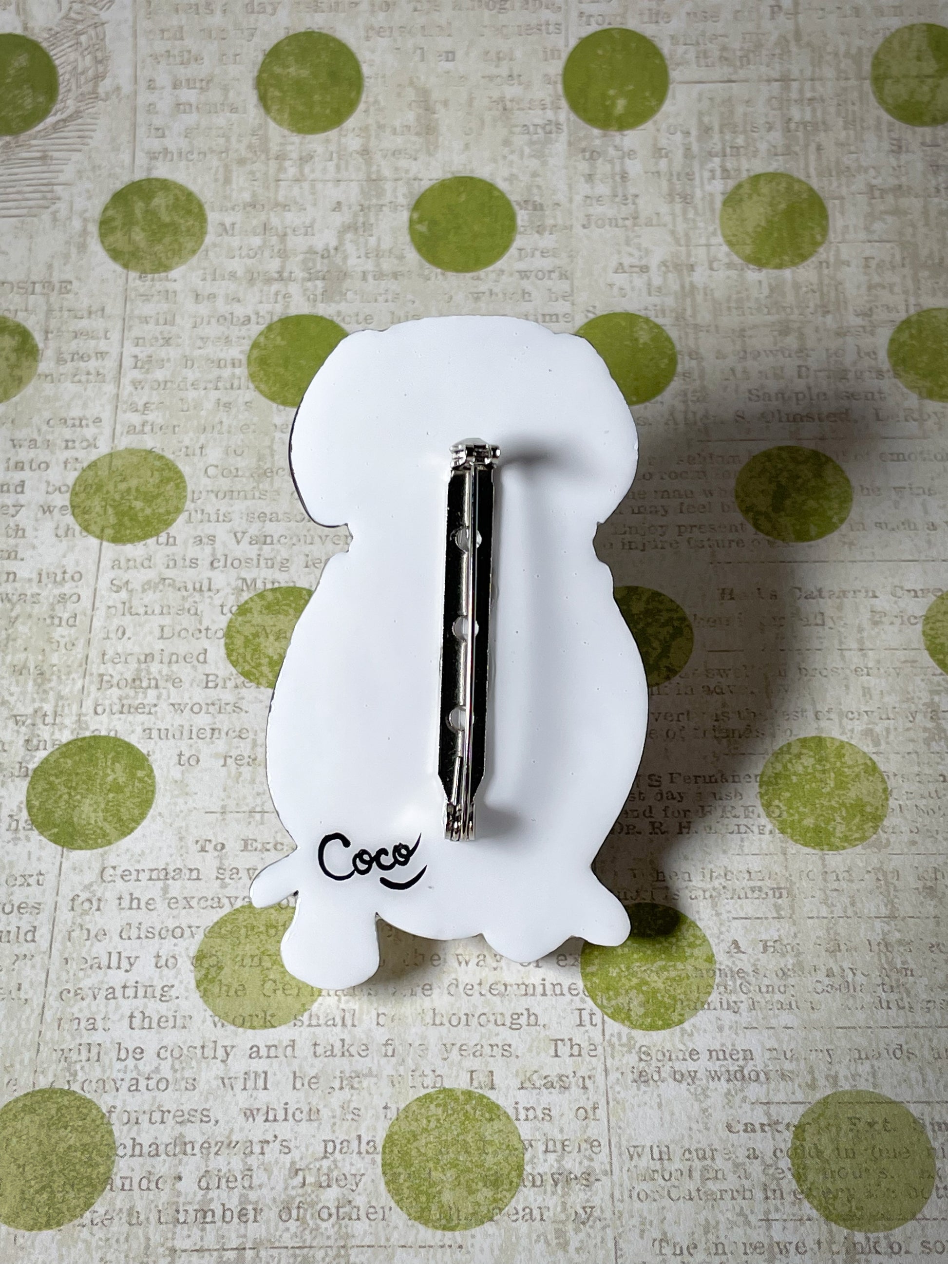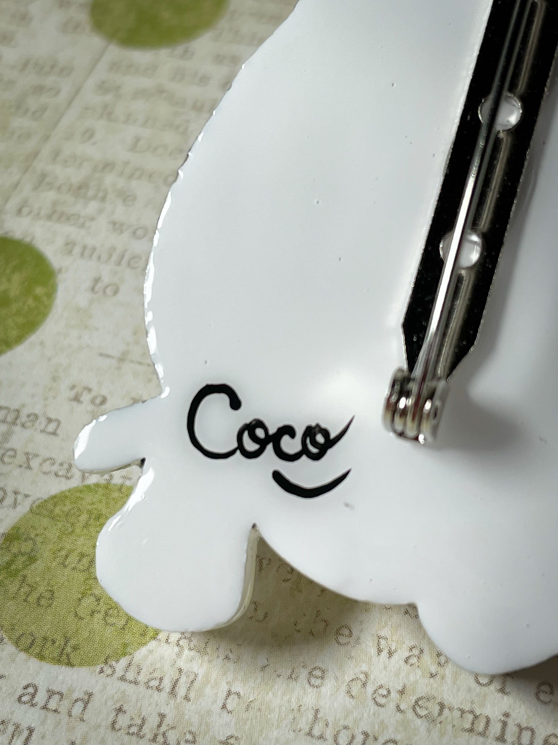 This brooch is made from 9 pieces of hand-painted acrylic plates, assembled and coated with acrylic UV/LED resin and backed with a silver brooch pin.