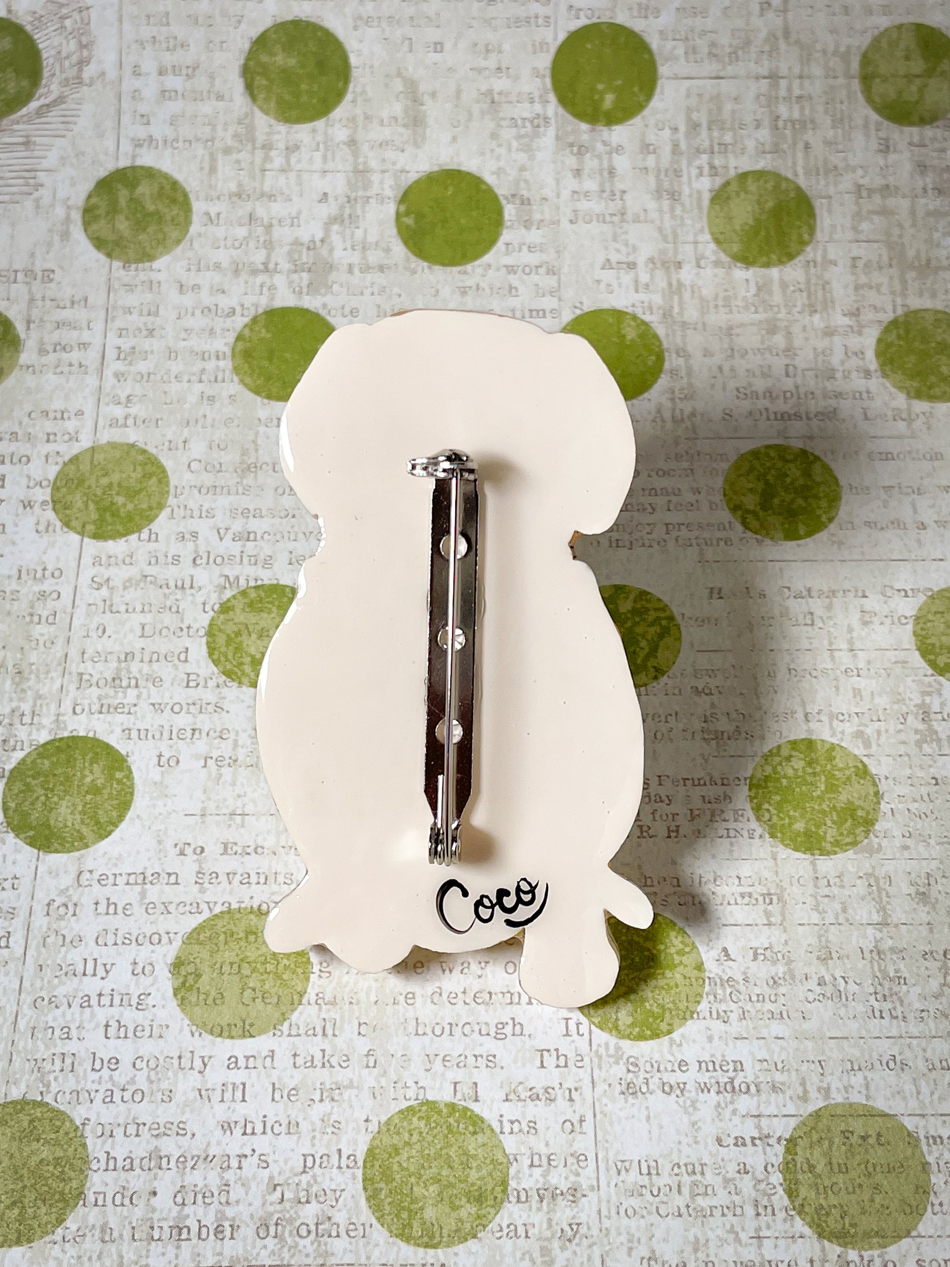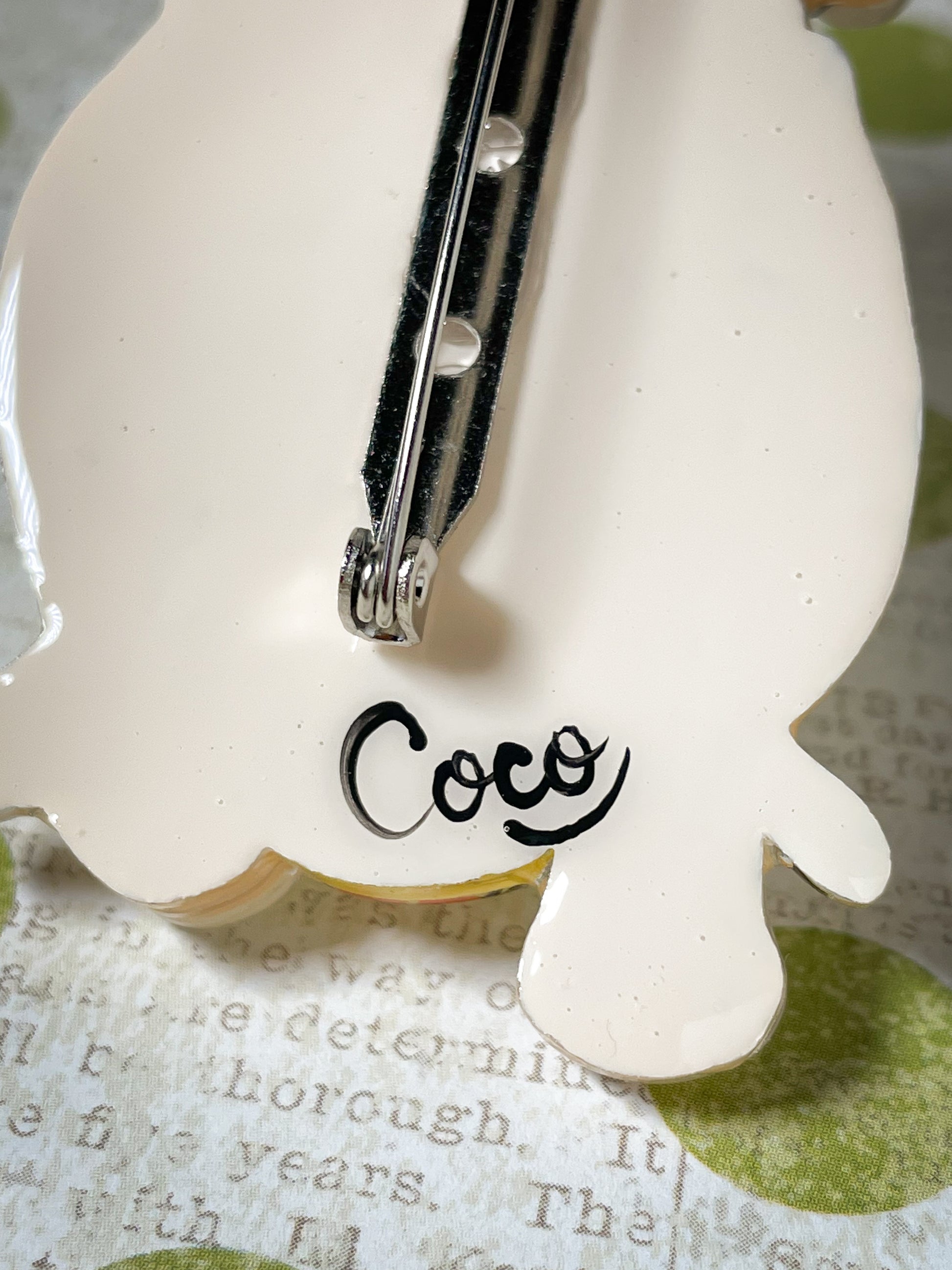This brooch is made from 9 pieces of hand-painted acrylic plates, assembled and coated with acrylic UV/LED resin and backed with a silver brooch pin.