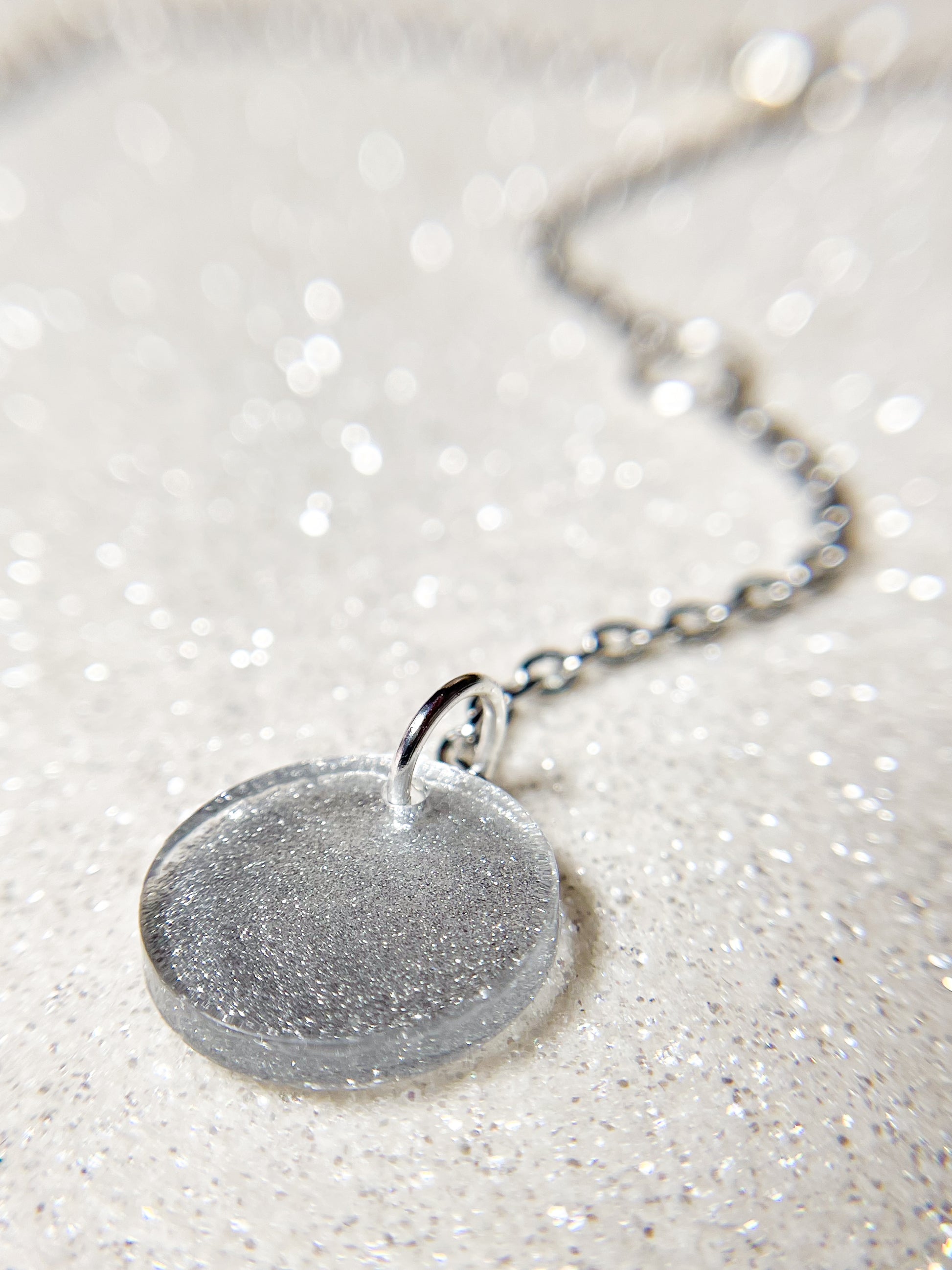 This necklace is made from 20 pieces of hand-painted acrylic plates and paper, assembled and coated with acrylic UV/LED resin and finished with a silver surgical stainless steel chain with an extender.