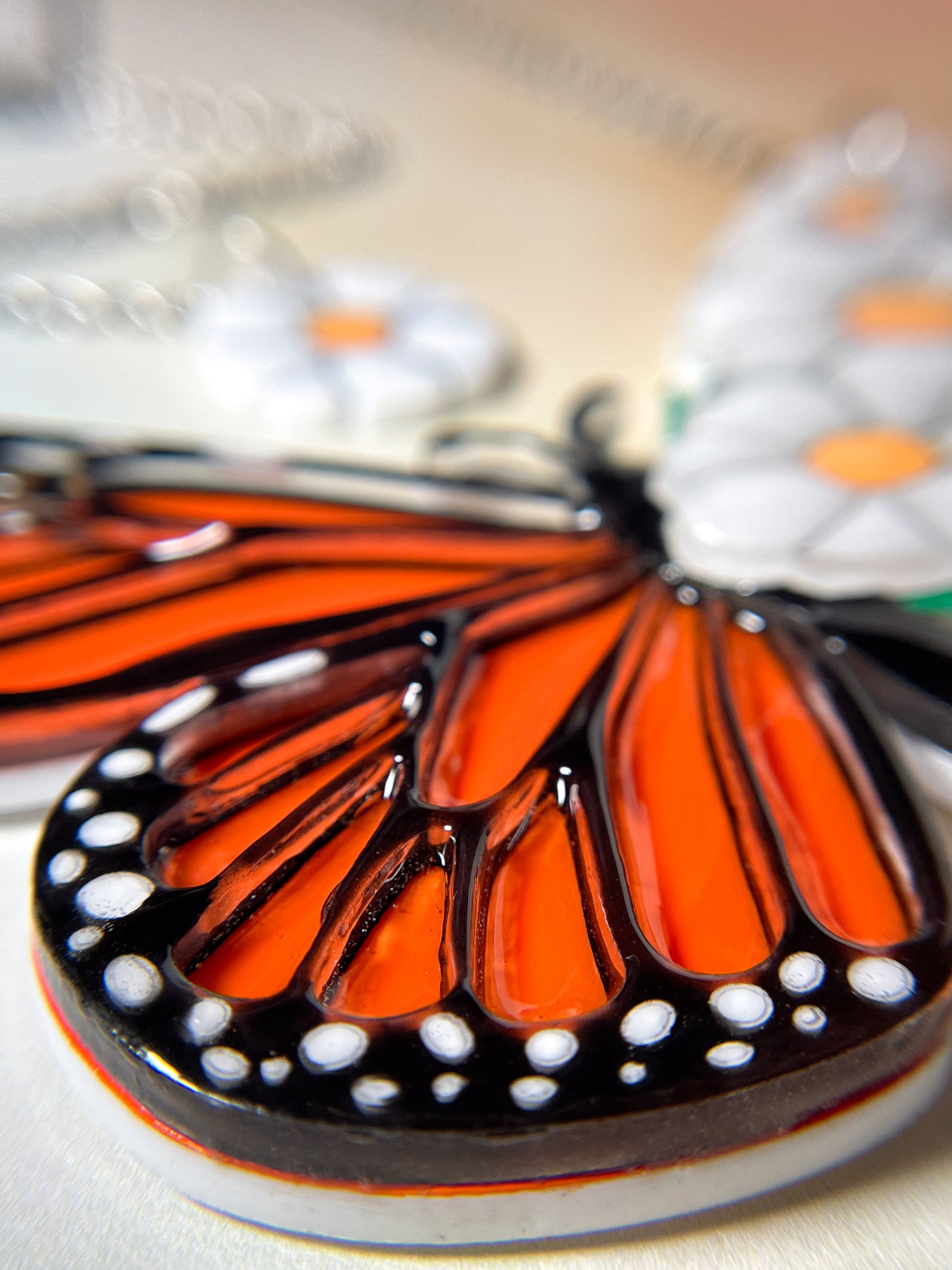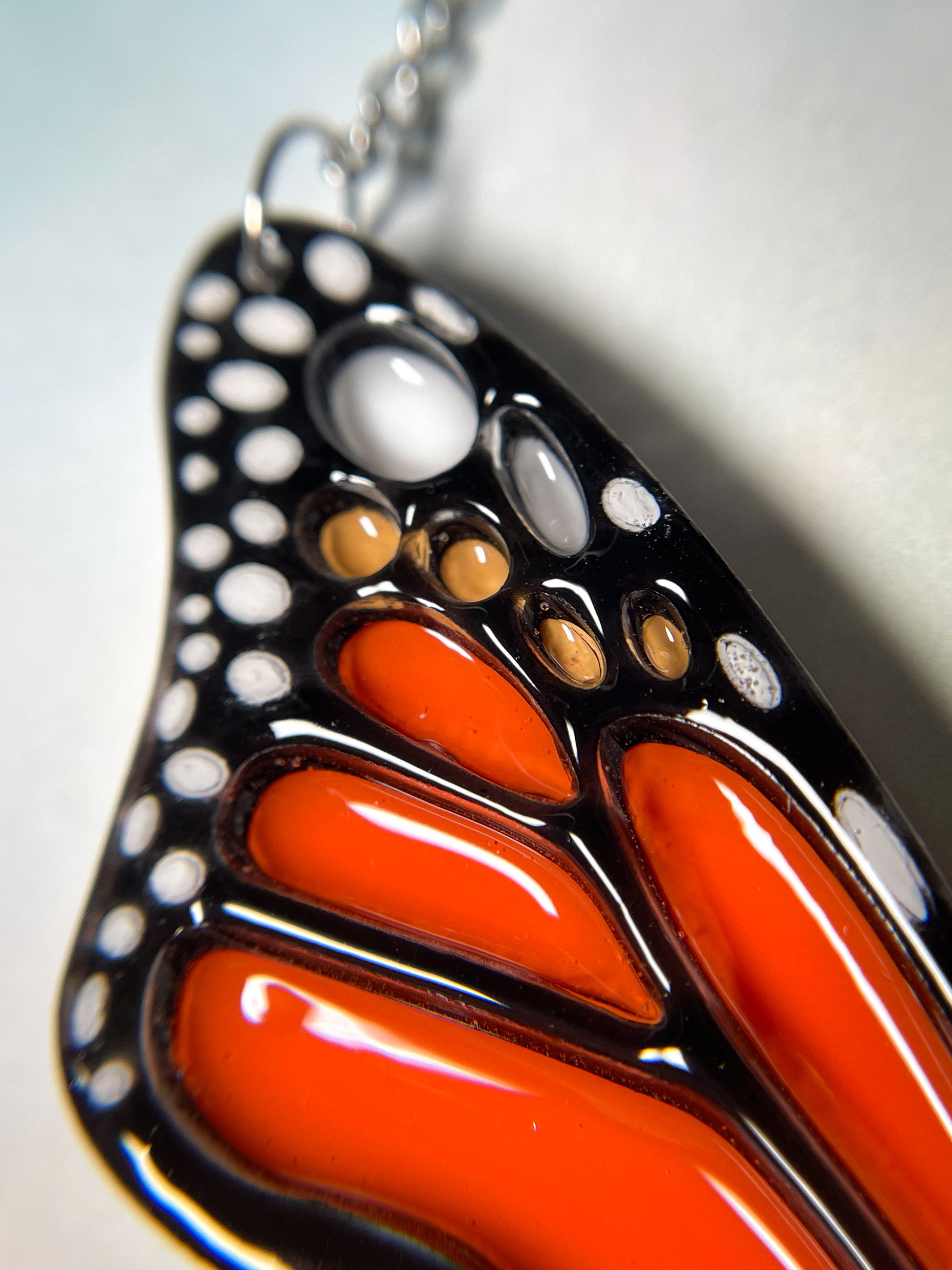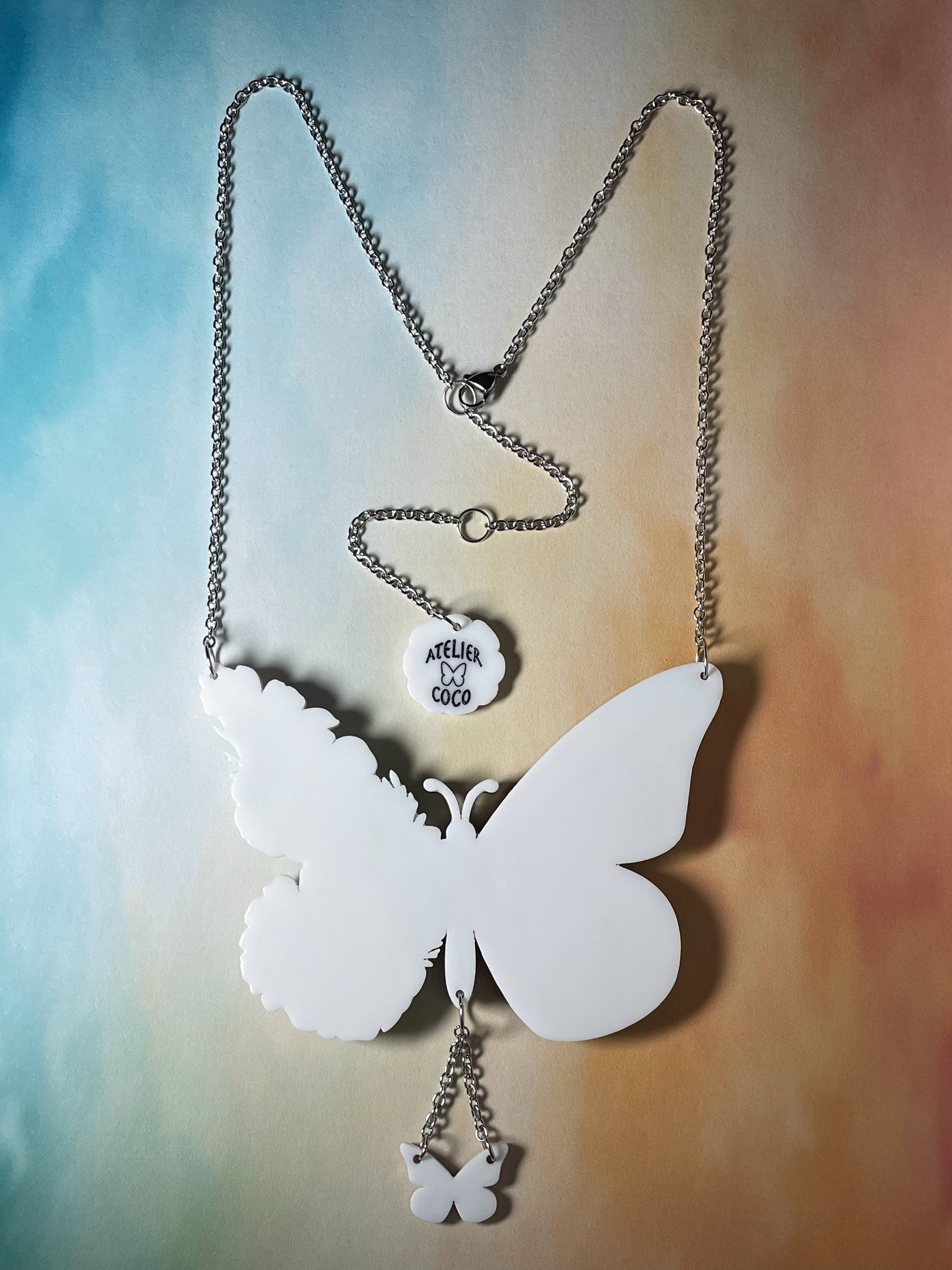 This necklace is made from 7 pieces of hand-painted acrylic plates, assembled and coated with acrylic UV/LED resin and finished with a silver surgical stainless steel chain with an extender.