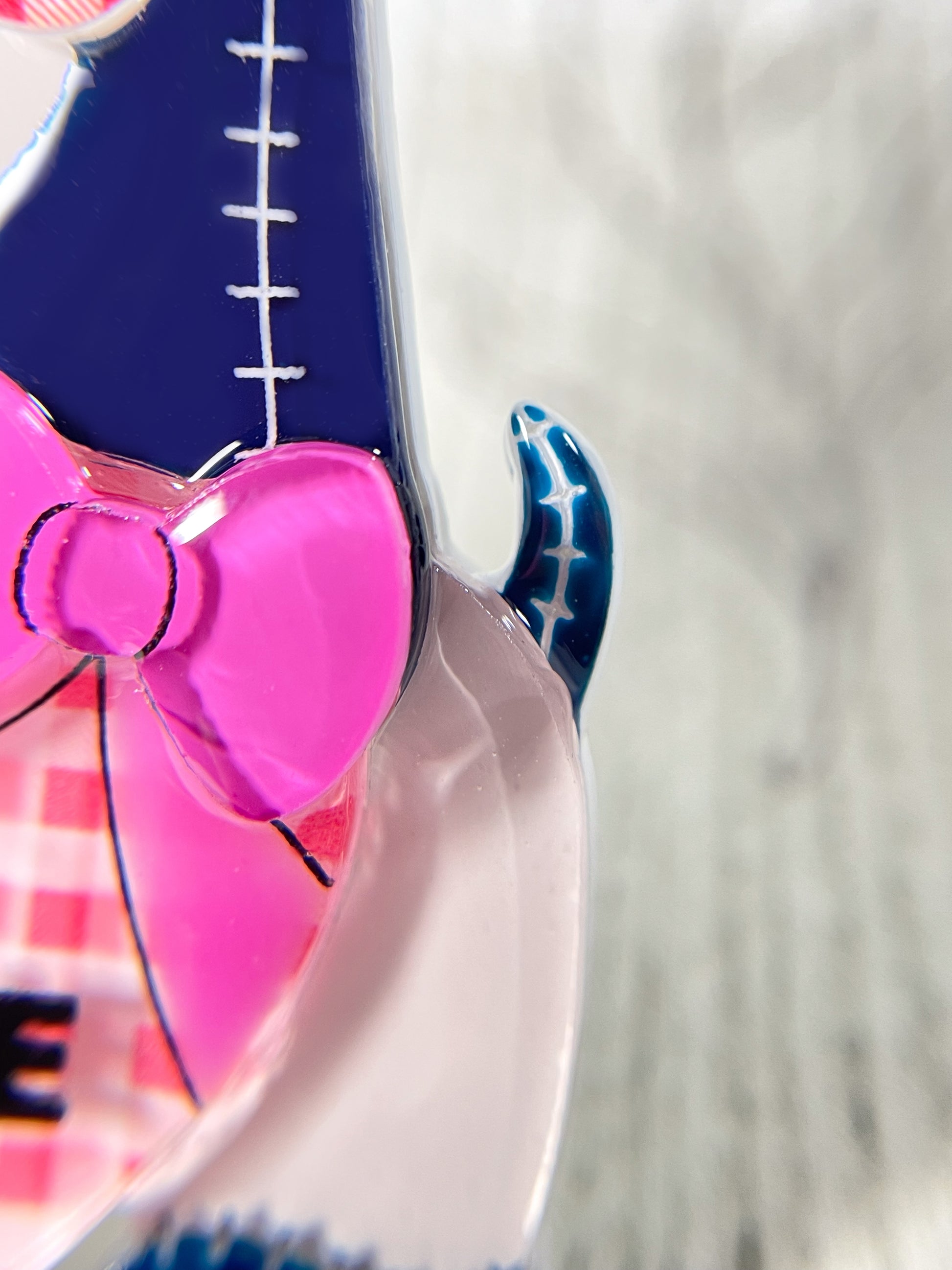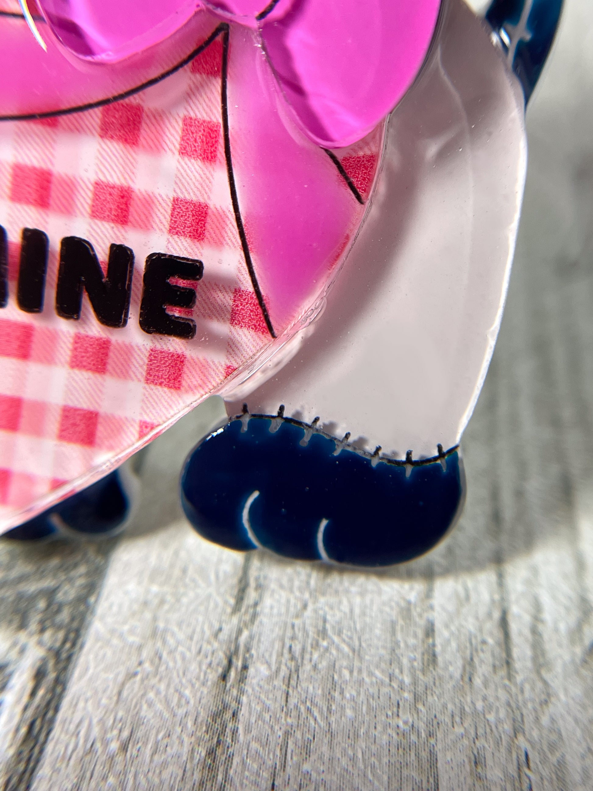 This brooch is made from 9 pieces of hand-painted acrylic plates, assembled and coated with acrylic UV/LED resin and backed with a silver brooch pin.