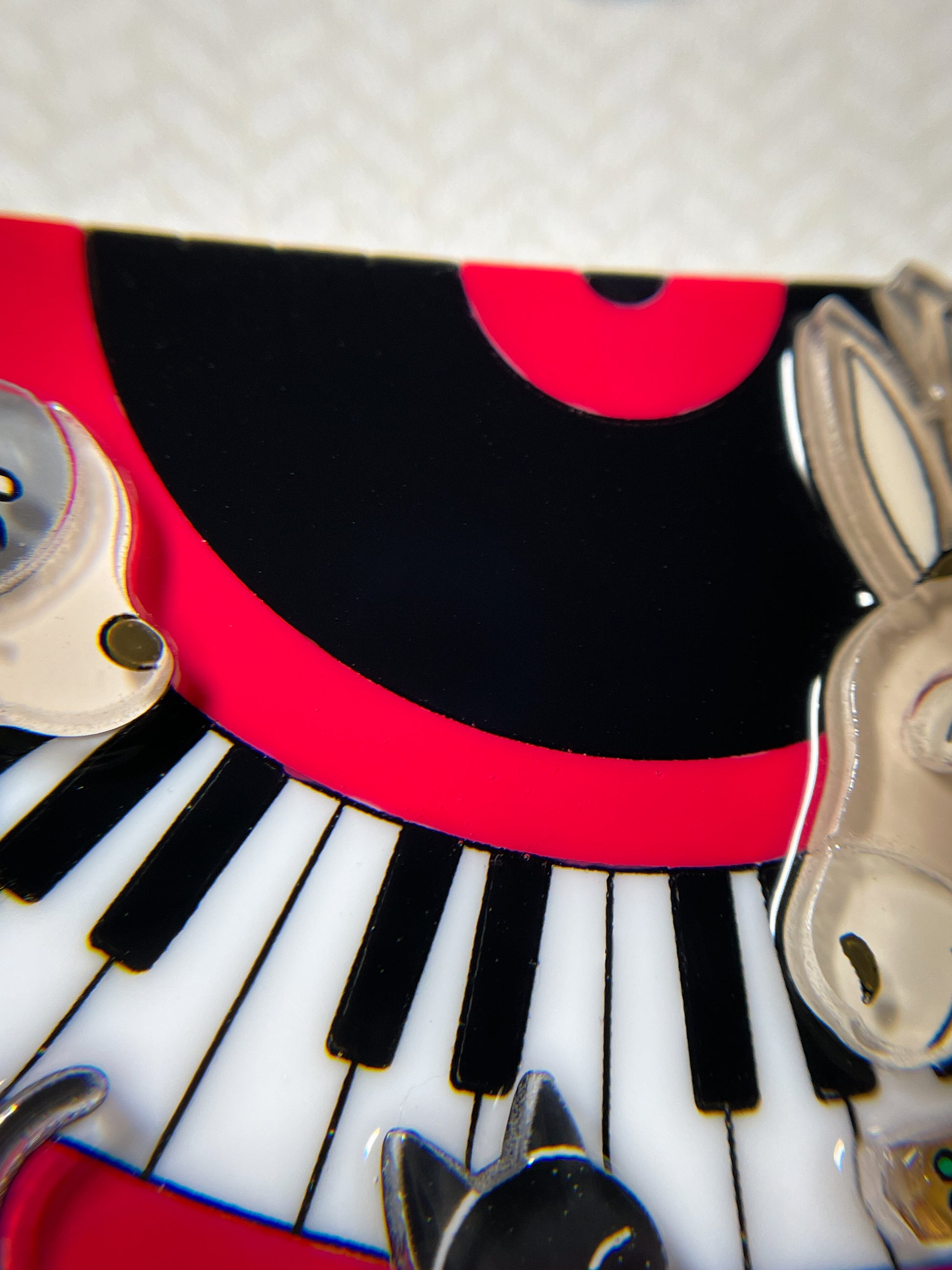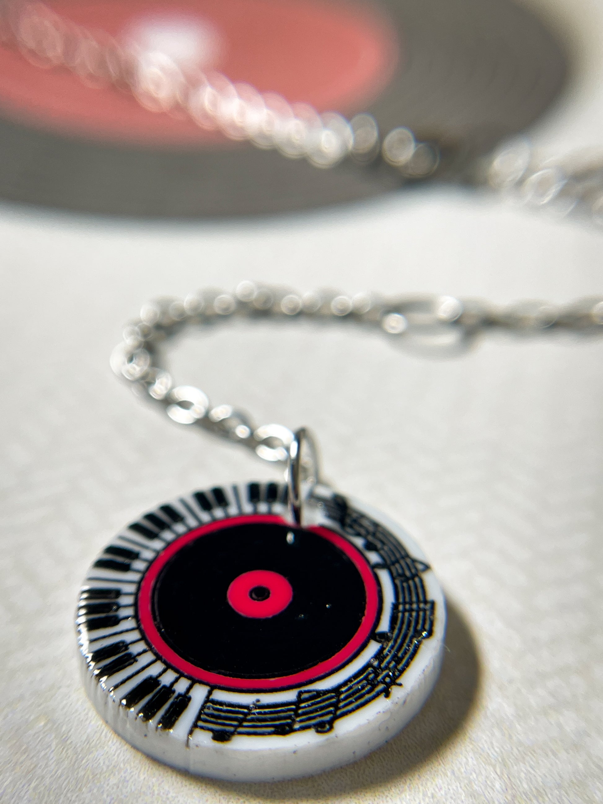 This necklace is made from 14 pieces of hand-painted acrylic plates, assembled and coated with acrylic UV/LED resin and finished with a silver surgical stainless steel chain with an extender.