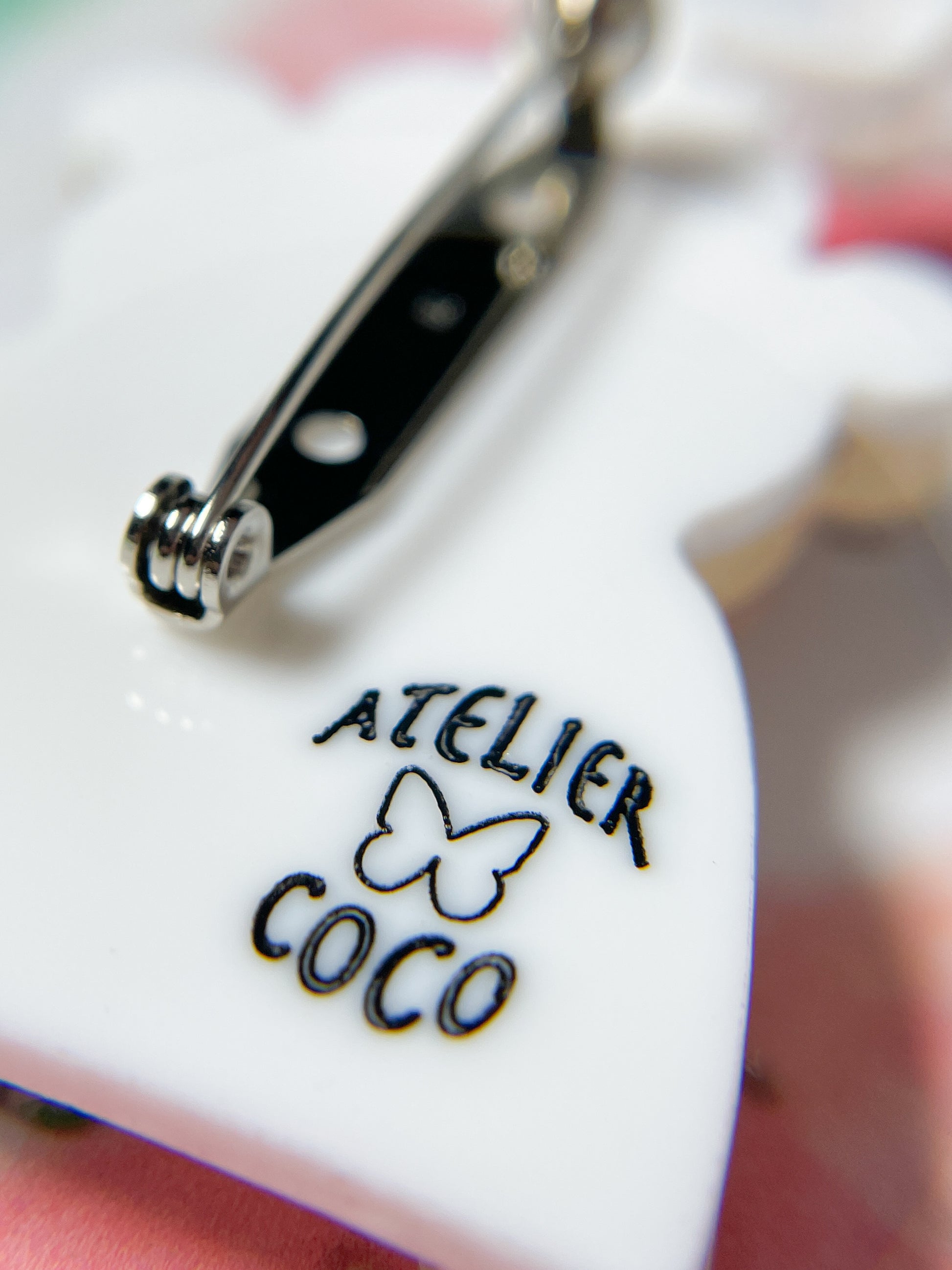 Original design by a Japanese accessory artist Coco and each brooch has the "ATELIER COCO" logo on the back.